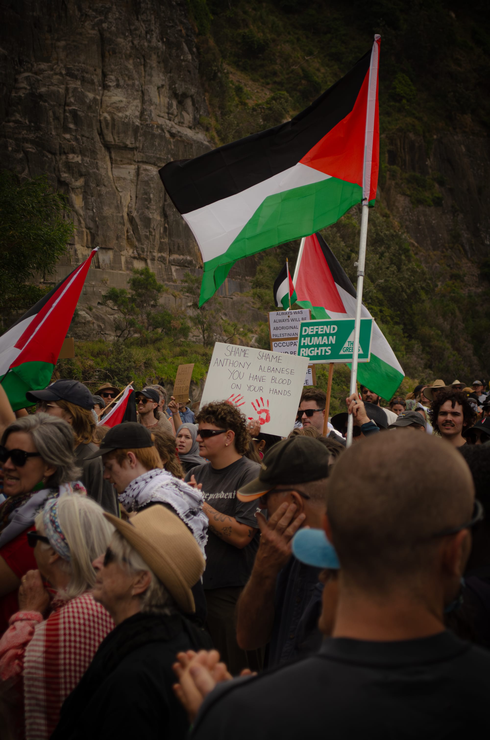 After more than a decade of silence on the Sea Cliff Bridge, protesters successfully and peacefully returned to close the bridge on the 7th of December 2025. Hundreds crowded the streets to rally against Israel’s ongoing illegal occupation of Gaza and the West Bank, and to demand more action from Australia. Attendees of all ages, backgrounds, political alignments, and even species gathered to stand in solidarity with Palestine.