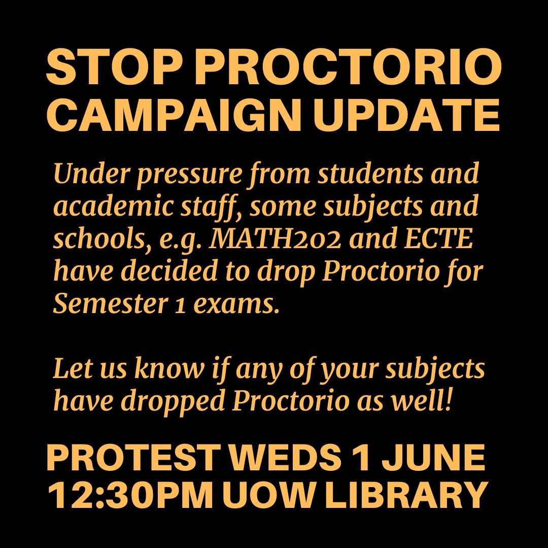 Last week, a Facebook post from the Wollongong Undergraduate Students’ Association (WUSA) said "under pressure from students and academic staff, some subjects and schools, e.g. MATH202 and ECTE (School of Electrical, Computer and Telecommunications Engineering) have decided to drop Proctorio for Semester 1 exams."