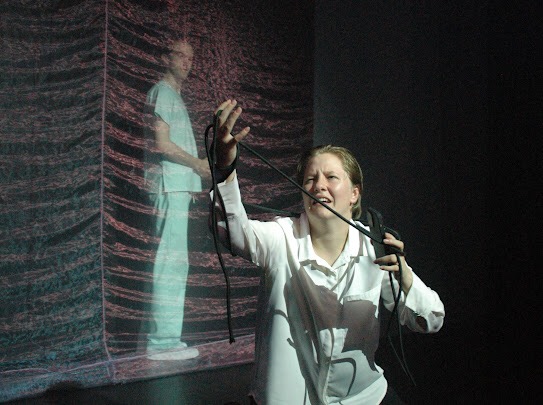 Walsh’s Epilogue is a counterpart, a reaction, a bitterness to Prologue. Anger at the melancholia, the years of wasting and sickness, of writing, of trying, of finding a place, of waiting in the in-between – this is what Walsh embodies as Epilogue. Beyond the projection of these two characters across either end of the stage, the sense of tension between these two states of being – Epilogue and Prologue – is captured in Epilogues response to Prologue, a kind of rebuttal to the dream-like world that Epilogue exists in. Prologue seems to proclaim a truer sense of reality.