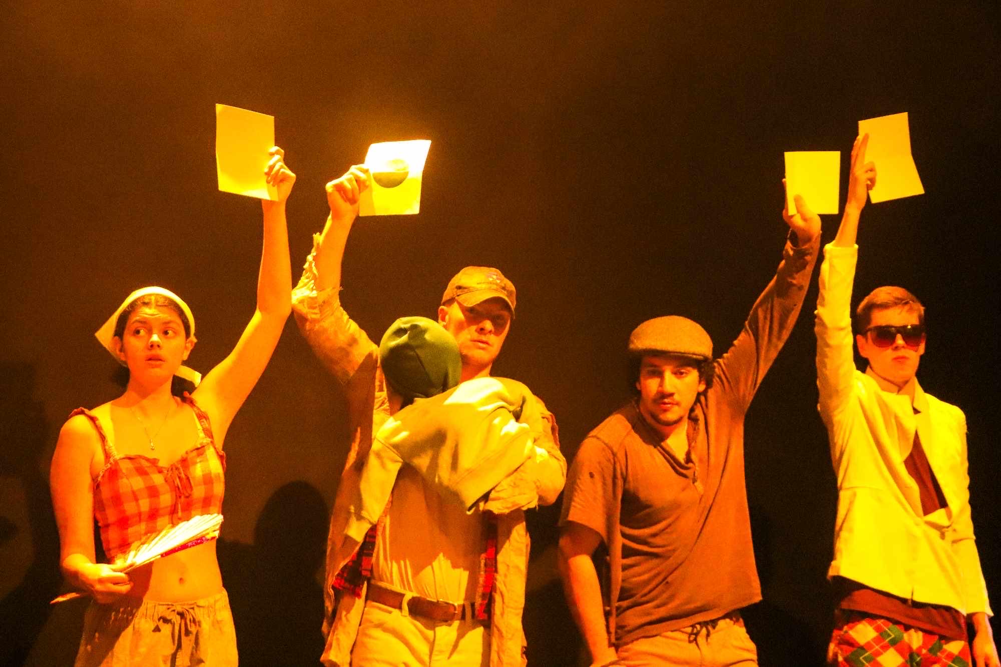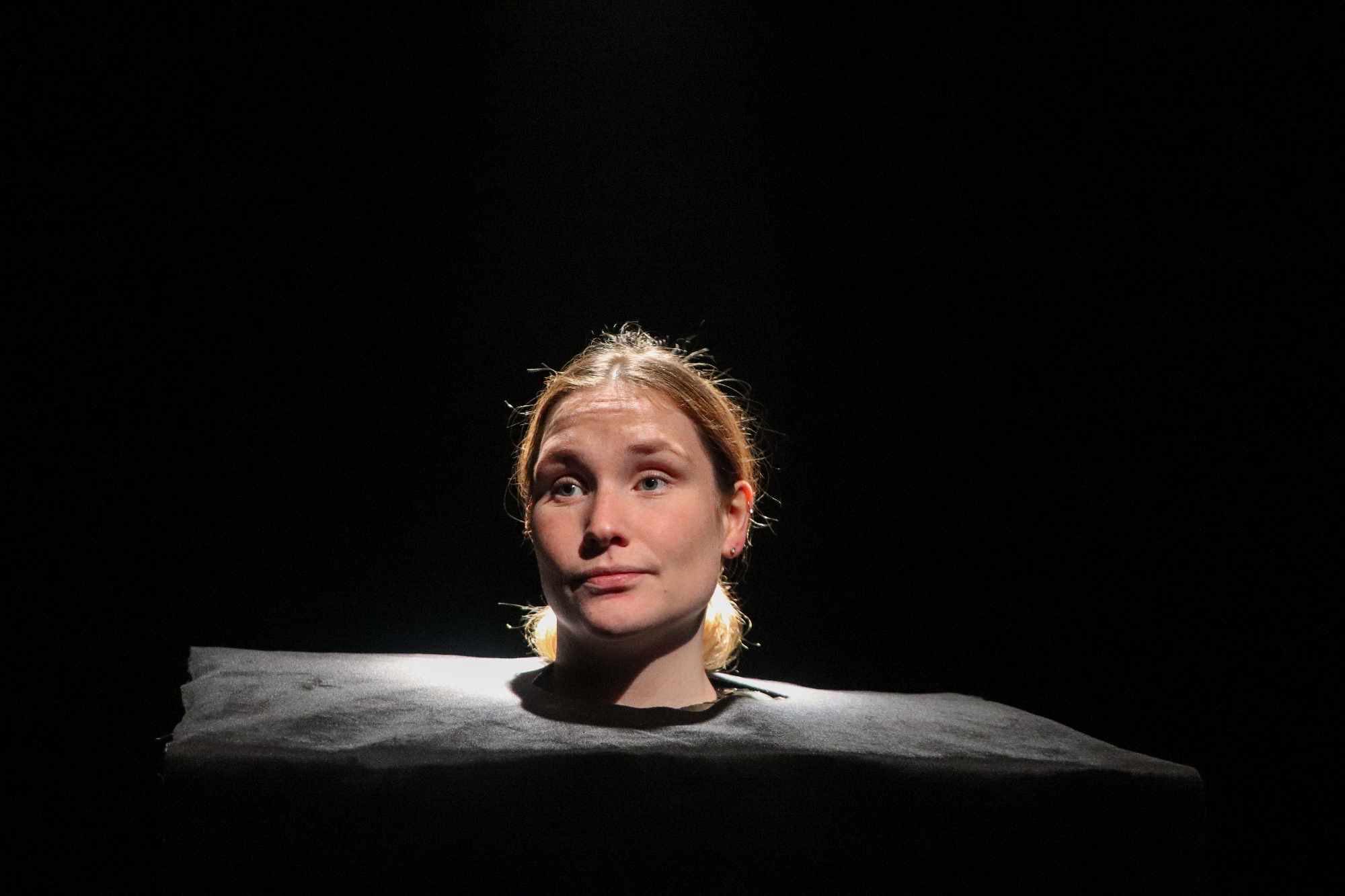 Kill was a philosophical conversation between the ‘gods’ directed towards the audience discussing the crueller acts of man and judging humankind for behaving in such ways on behalf of the gods, which they themselves acknowledge, “don’t exist.” Topics such as murder and immorality were mentioned while two actors played instruments on the side of the stage, made noises and scraped knives on metal, creating an eerie, out-of-this-world sensation.